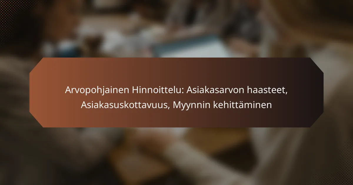 Arvopohjaisen hinnoittelun keskeiset haasteet liittyvät asiakasarvon määrittämiseen, kilpailijoiden strategioihin ja asiakkaiden odotusten hallintaan. Nämä tekijät vaikuttavat suoraan hinnoittelupäätöksiin ja voivat vaikuttaa myynnin kehittämiseen merkittävästi.