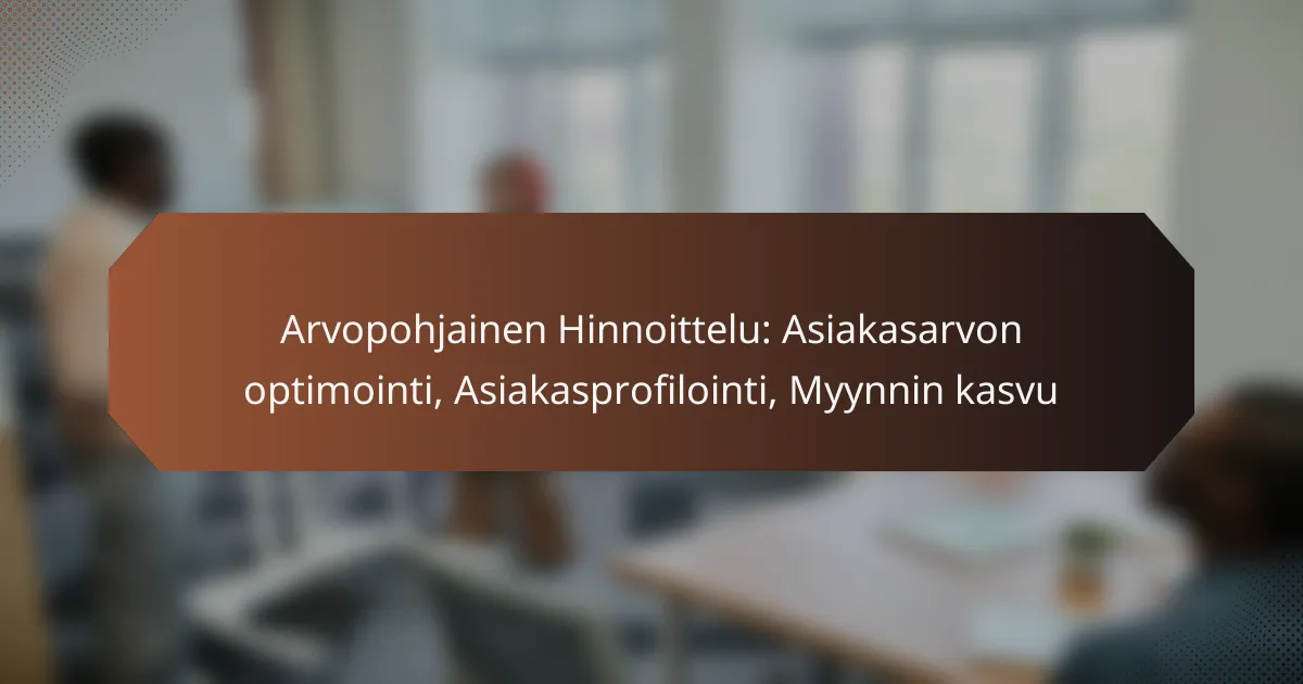 Arvopohjainen hinnoittelu keskittyy asiakkaan kokemaan arvoon ja maksuhalukkuuteen, mikä auttaa yrityksiä optimoimaan hinnoittelustrategioitaan. Asiakasarvon optimointi ja asiakasprofilointi ovat keskeisiä tekijöitä, jotka edistävät myynnin kasvua ja varmistavat, että hinnoittelumallit heijastavat tuotteen tai palvelun todellista arvoa asiakkaalle.