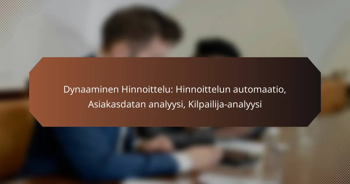 Dynaaminen hinnoittelu on hinnoittelustrategia, jossa tuotteiden tai palveluiden hinnat vaihtelevat markkinatilanteen mukaan, mikä auttaa yrityksiä optimoimaan myyntiään ja kannattavuuttaan. Hinnoittelun automaatio mahdollistaa strategioiden ja päivitysten toteuttamisen automaattisesti asiakasdatan ja kilpailija-analyysin perusteella, mikä takaa nopean reagoinnin markkinamuutoksiin. Asiakasdatan analyysi on keskeinen osa tätä prosessia, sillä se auttaa ymmärtämään asiakkaiden käyttäytymistä ja maksuhalukkuutta, mikä puolestaan parantaa myyntiä ja asiakastyytyväisyyttä.