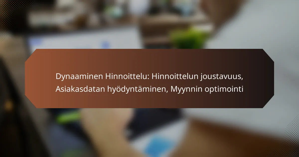 Dynaaminen hinnoittelu on keskeinen strategia, joka mahdollistaa hinnoittelun joustavuuden markkinatrendien ja asiakastiedon perusteella. Tämä lähestymistapa parantaa myynnin optimointia ja asiakastyytyväisyyttä, mikä puolestaan voi nostaa yrityksen kannattavuutta.