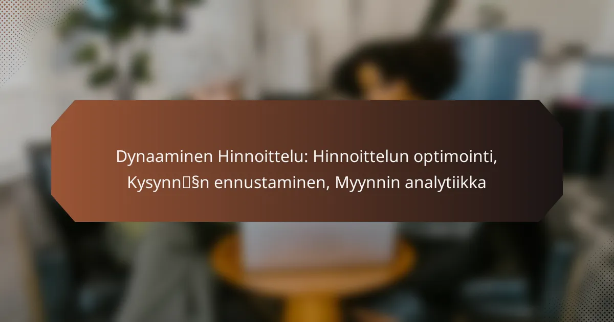 Dynaaminen hinnoittelu tarkoittaa hinnoittelustrategioiden jatkuvaa säätämistä markkinakysynnän ja kilpailutilanteen mukaan. Optimoimalla hinnoittelua yritykset voivat parantaa myyntiään ja voittojaan, mutta tämä vaatii tarkkaa analytiikkaa ja ennustamista.